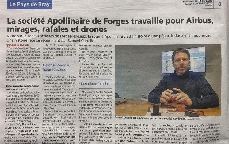 Pour en savoir plus : Cette semaine, Apollinaire Composites Technologies est à l’honneur dans les colonnes de L’Éclaireur – La Dépêche.